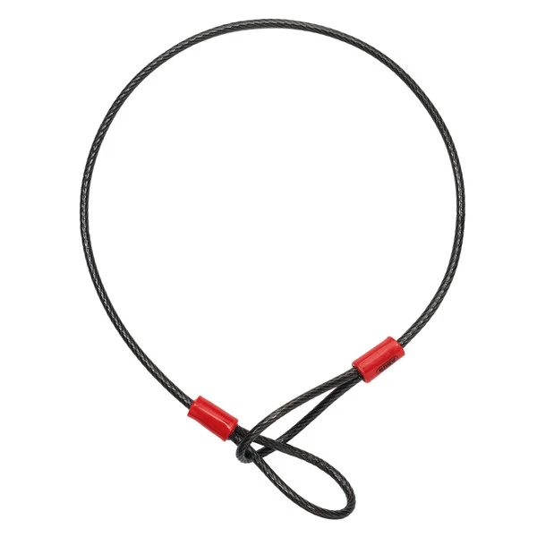 Das Zusatzsicherungskabel ist komplett mit Kunststoff ummantelt. Diese Variante des Cobra Stahlkabels mit Schlaufenenden ist die kürzeste und eignet sich zum Beispiel ideal, um Radtaschen oder Vorderräder zusätzlich an einem Bügelschloss zu sichern.