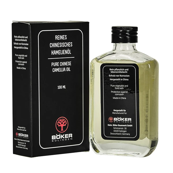 Das nach traditioneller chinesischer Rezeptur hergestellte Kamelienöl pflegt nicht rostfreie Messerklingen (z. B. Kohlenstoffstahl), bewegliche Teile und schützt Holzgriffe vor Feuchtigkeit.