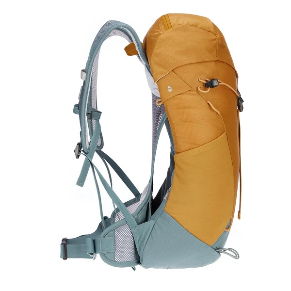 Der Toploader mit Deckel bietet dir, ganz klassisch, den Zugriff von oben auf deine Ausrüstung. Damit du unterwegs die Hände frei hast und dennoch schnell zum Navigieren und Fotografieren an dein Smartphone kommst, hat der AC Lite eine seitliche RV-Netztasche. Diese kannst du problemlos beim Wandern erreichen. Natürlich eignet sie sich auch hervorragend für Snacks.