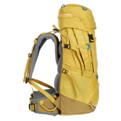 Das Tragesystem kombiniert einen gespannten Netzrücken mit weichen Polstern. Der Schwerpunkt bleibt dabei genauso körpernah wie bei einer Kraxe mit Kontaktrücken, denn das Tragesystem ist direkt mit dem Rahmen verbunden. Die Last wird optimal übertragen und dein Rücken maximal belüftet.