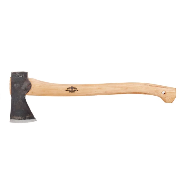 Der Stiel ist ergonomisch geformt und besteht aus Hickory-Holz. Dieses Holz besitzt lange parallele Fasern, eine hohe Festigkeit und ist dennoch flexibel. Bevor der Griff auf der Drehbank in Form gebracht wird, wird das Holz vollständig getrocknet. Das verhindert ein Zusammenziehen nach der Verarbeitung und damit das Lösen des Axtkopfes. Zur Pflege wird der Schaft anschließend mit heißem Leinsamenöl getränkt. Im letzten Schritt wird die Oberfläche mit Bienenwachs behandelt, um ihn wasser- und schmutzabweisend zu machen.