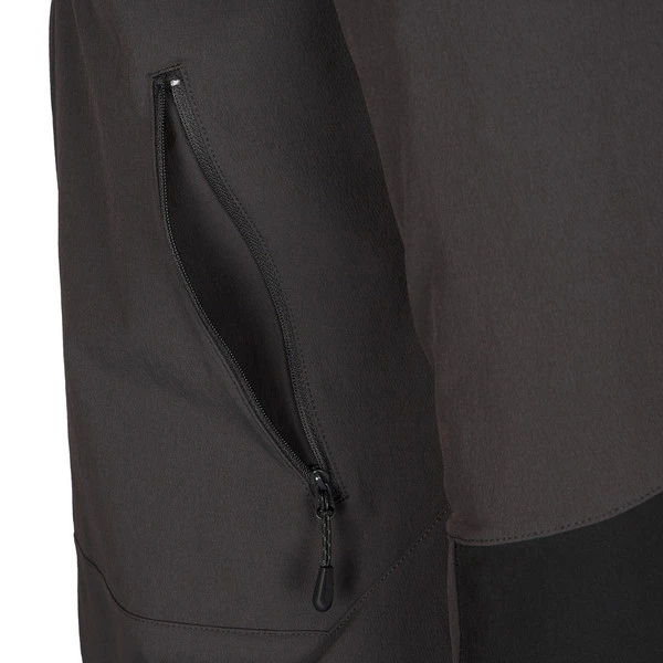 Die teilelastische Kapuze mit Schirm hält dir lästige Wassertropfen aus dem Gesicht. Für mehr Tragekomfort und weiteren Windschutz sorgen der unterlegte Reißverschluss mit Kinnschutz und der einstellbare Saum. Die beiden RV-Taschen sind extra höher angebracht, sodass du sie auch mit Rucksackgurten problemlos erreichen kannst. In den Taschen befindet sich ein Meshfutter, welches ein wenig frische Luft verschaffen kann.