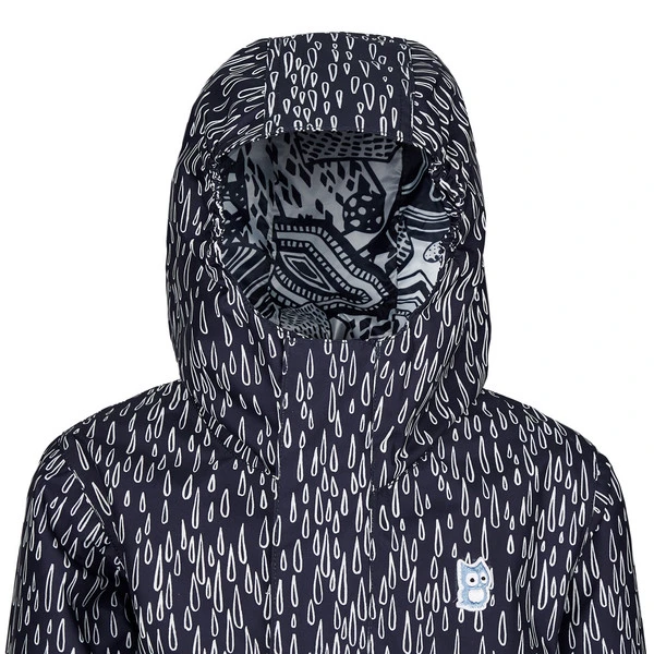 Der Front-RV ist mit einer Windschutzleiste versehen, sodass es auch hier Nässe und frischem Wind nicht gelingt, nach innen zu dringen. Zudem kannst du die Ärmelabschlüsse sowie den Saum in der Weite regulieren, wodurch sich Sitz und Wetterschutz optimieren lassen. Den Komfort an dunklen Regentagen komplettieren die reflektierenden Designelemente – wie die kleine Eule am hinteren Saum, die bei Dunkelheit erst richtig aktiv wird.