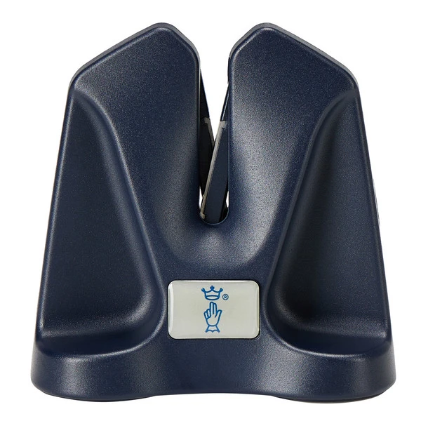 Für das beste Ergebnis zieh die Messerklinge mit minimalem Druck über die beiden Schärfelemente. Diese sind V-förmig und beweglich gelagert, um sich automatisch dem Schärfwinkel deiner Klinge anzupassen. Die Fingermulden schützen deine Hände vor dem scharfen Endergebnis. Um einen sicheren Stand auf dem Tisch zu gewährleisten, befinden sich Silikonauflagen auf der Unterseite.
