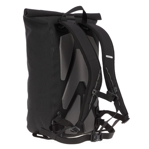 Der Velocity High Vis hat ein gepolstertes Laptopfach und ein kleines RV-Fach im Inneren. Zwei Füße sorgen dafür, dass er stabil steht. Um den Inhalt sicher vor Regenwasser zu schützen, schließt du den Fahrradrucksack per Rollverschluss. Wie immer gilt: Um die Wasserdichtigkeit zu gewährleisten, muss der Verschluss 3x gerollt werden!